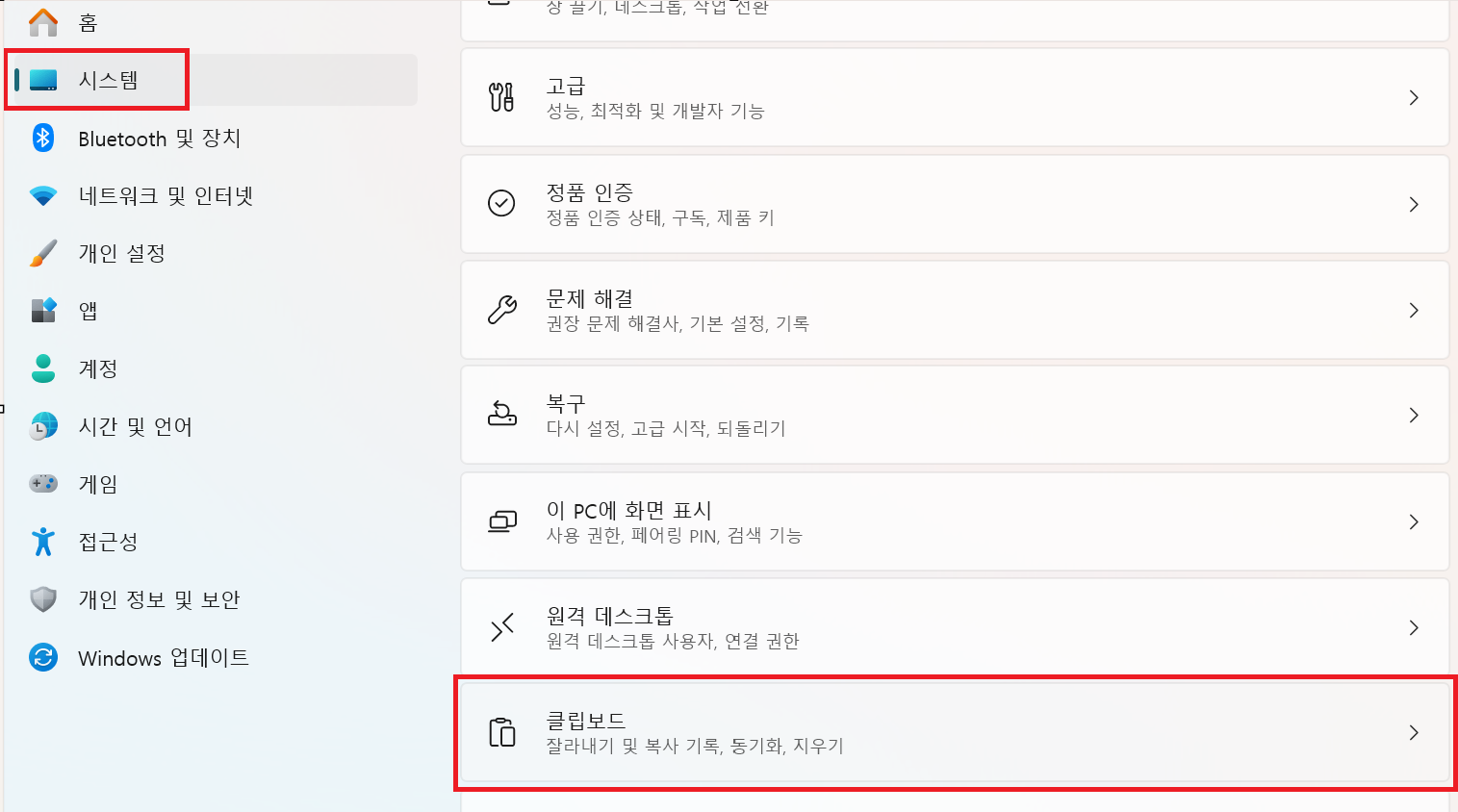 1️⃣ 설정 → 시스템 → 클립보드