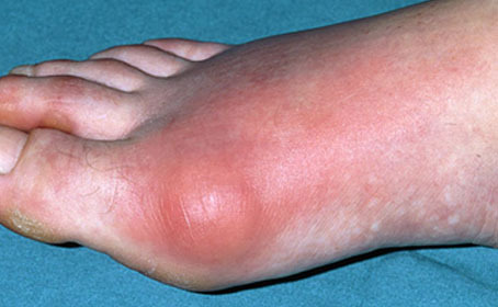 통풍 증상은 대부분 엄지발가락 관절에서 시작된다. 특별한 외상이 없는데도 관절이 갑자기 붓고, 불에 덴 것처럼 뜨겁고 심한 통증이 나타난다.