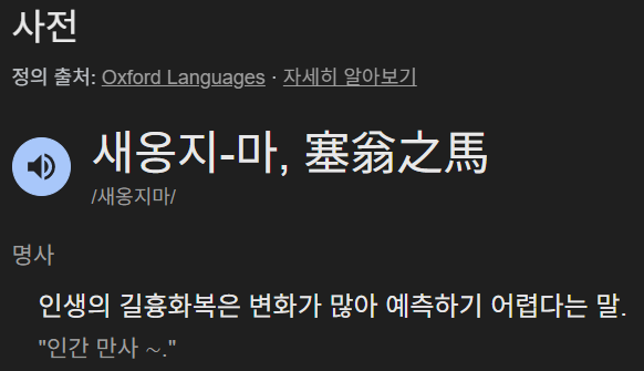 인생의 길흉화복은 예측할 수 없다는 뜻이다.