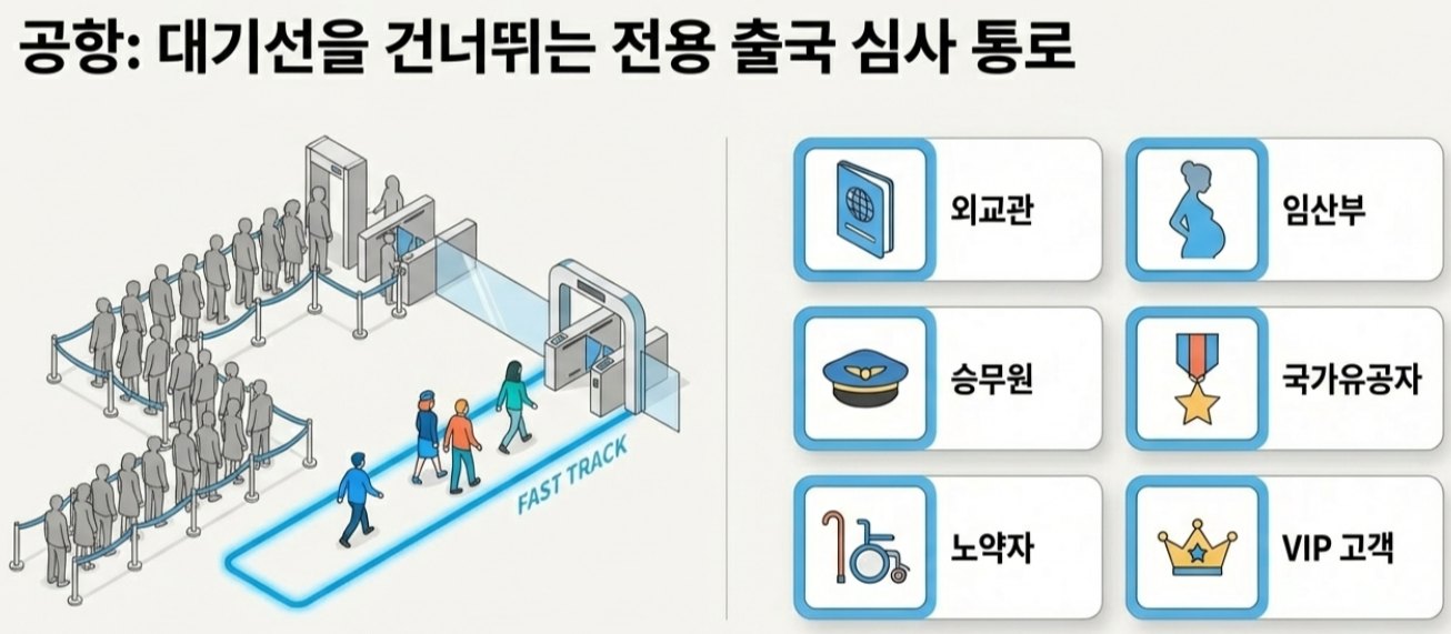 공항에서는 출국 심사를 빠르게 진행할 수 있도록 만든 전용 통로를 의미합니다.