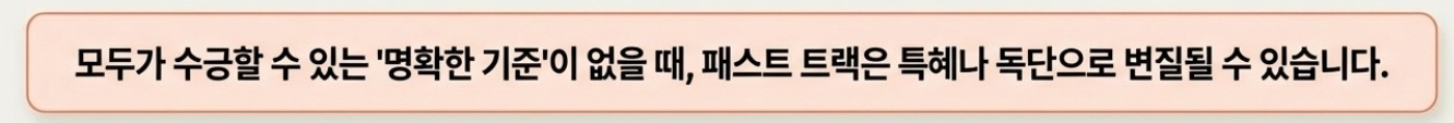 패스트 트랙(Fast Track)은 말 그대로 일반 절차보다 빠르게 진행하도록 마련된 특별한 처리 과정을 의미합니다.