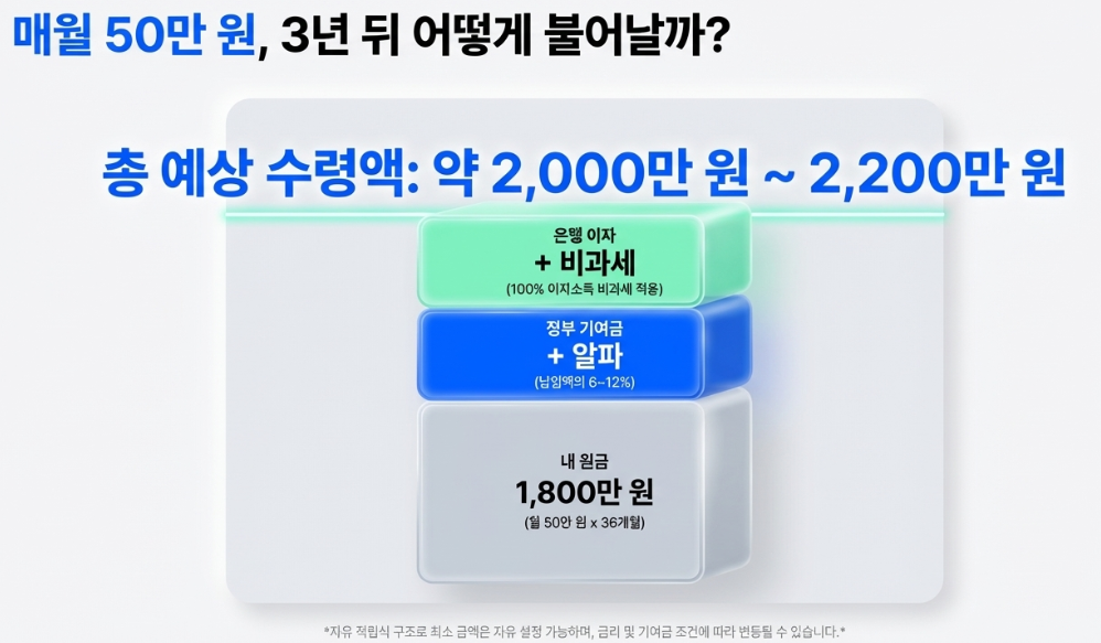 기간을 줄이고 정부 기여금을 강화한 상품으로, 3년 동안 저축하면 약 2,000만 원