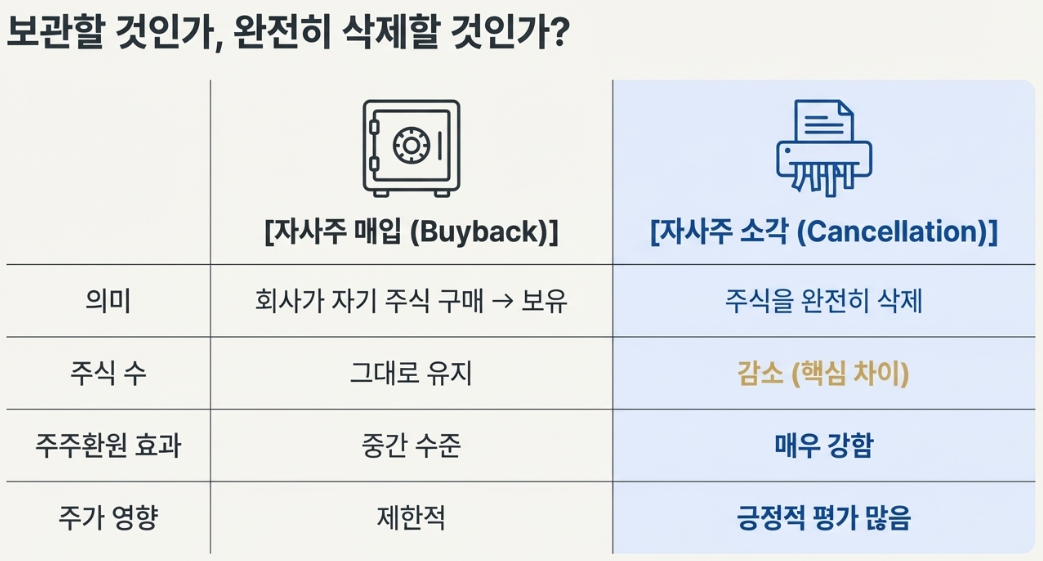 자사주 매입 vs 자사주 소각 차이