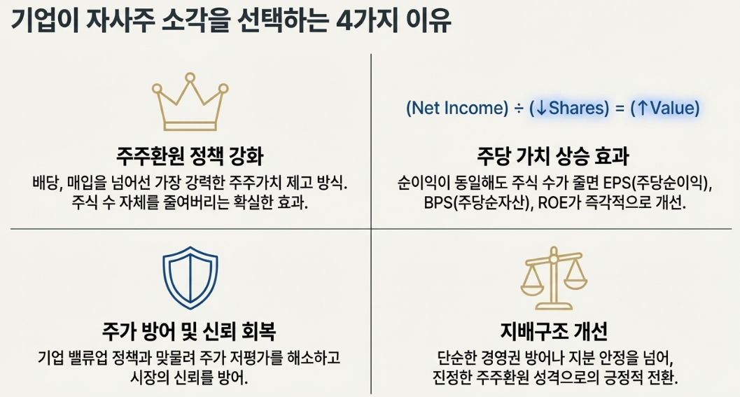 기업이 자사주를 소각하는 이유는 크게 4가지입니다.