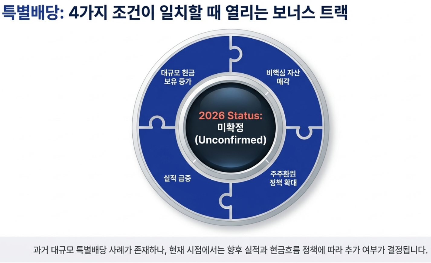 다만 2026년 현재 기준으로 특별배당 확정 발표는 없는 상태이며,