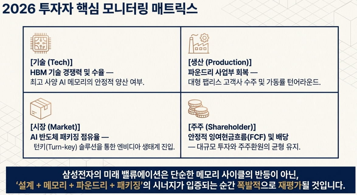 특히 삼성전자의 미래는 AI 반도체 + 고성능 메모리 + 패키징 기술에서 결정될 가능성이 높습니다.